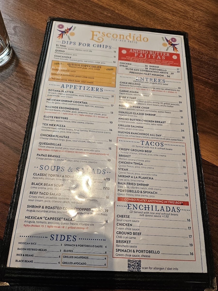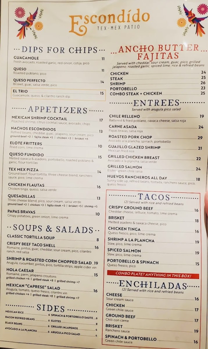 Customer reviews reinforce the charm of Escondido Tex Mex Patio, with one patron expressing, “The food was incredibly flavorful and authentic” and certainly worth returning for. Others commented on the "amazing" cocktails and the lovely atmosphere that sets the stage for a great meal with friends or family.